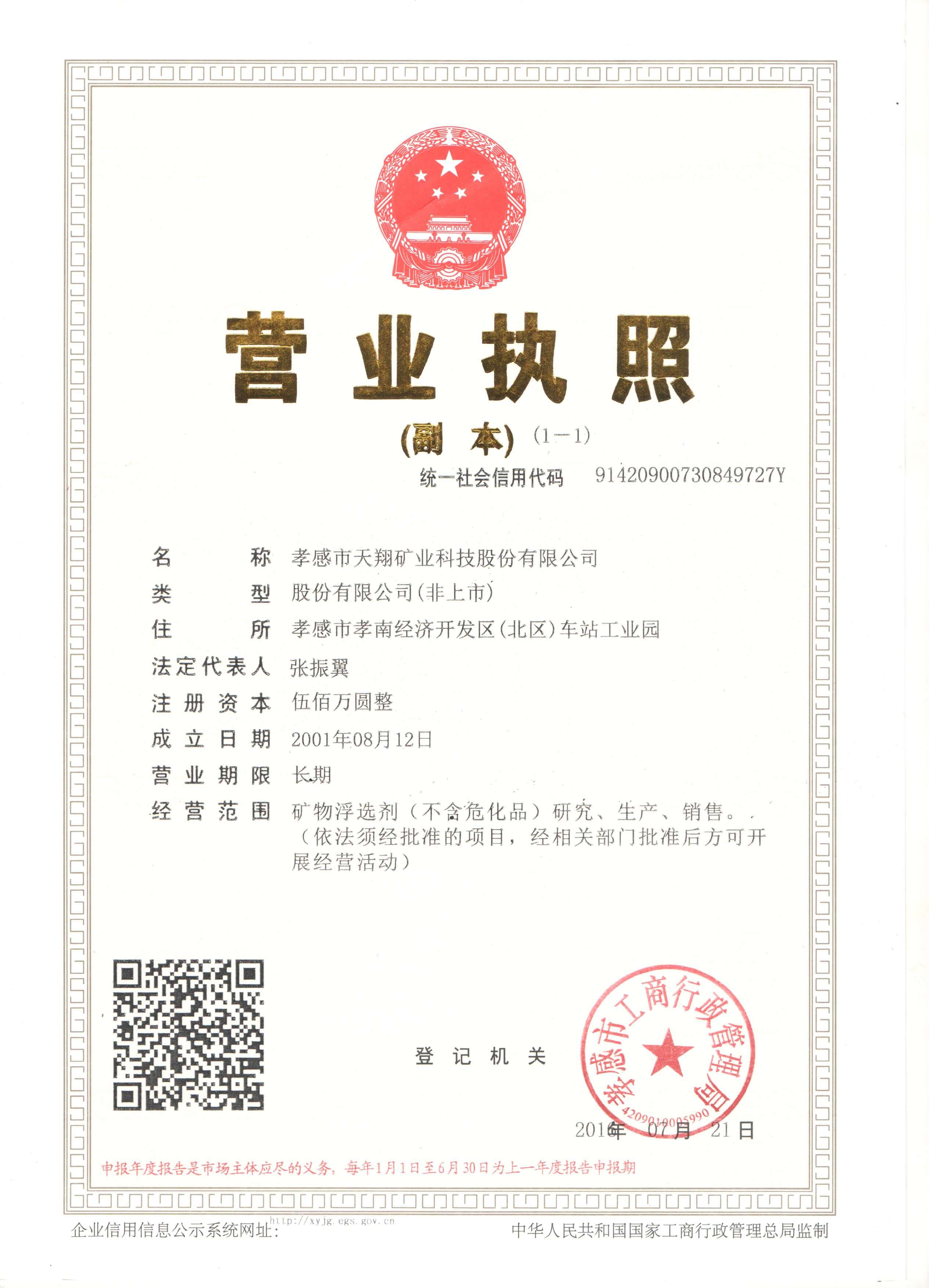 孝感市天翔礦業(yè)科技股份有限公司是一家專(zhuān)業(yè)從事氧化礦浮選藥劑研究開(kāi)發(fā)和生產(chǎn)的企業(yè)。成立于1996年,經(jīng)過(guò)20多年的研發(fā)與生產(chǎn)實(shí)踐,產(chǎn)品覆蓋磷礦、鋰礦、螢石礦、鎢礦、錫礦、鈦鐵礦、鋁土礦、稀土礦等多礦種的浮選藥劑,在業(yè)內(nèi)享有一定知名度。一份耕耘,一份收獲,多年的積累一定會(huì)產(chǎn)生行業(yè)認(rèn)可的高端產(chǎn)品。公司將會(huì)提供給礦山高效、有競(jìng)爭(zhēng)力的產(chǎn)品,會(huì)與礦山企業(yè)一道,共同為行業(yè)發(fā)展作出優(yōu)秀的貢獻(xiàn)。